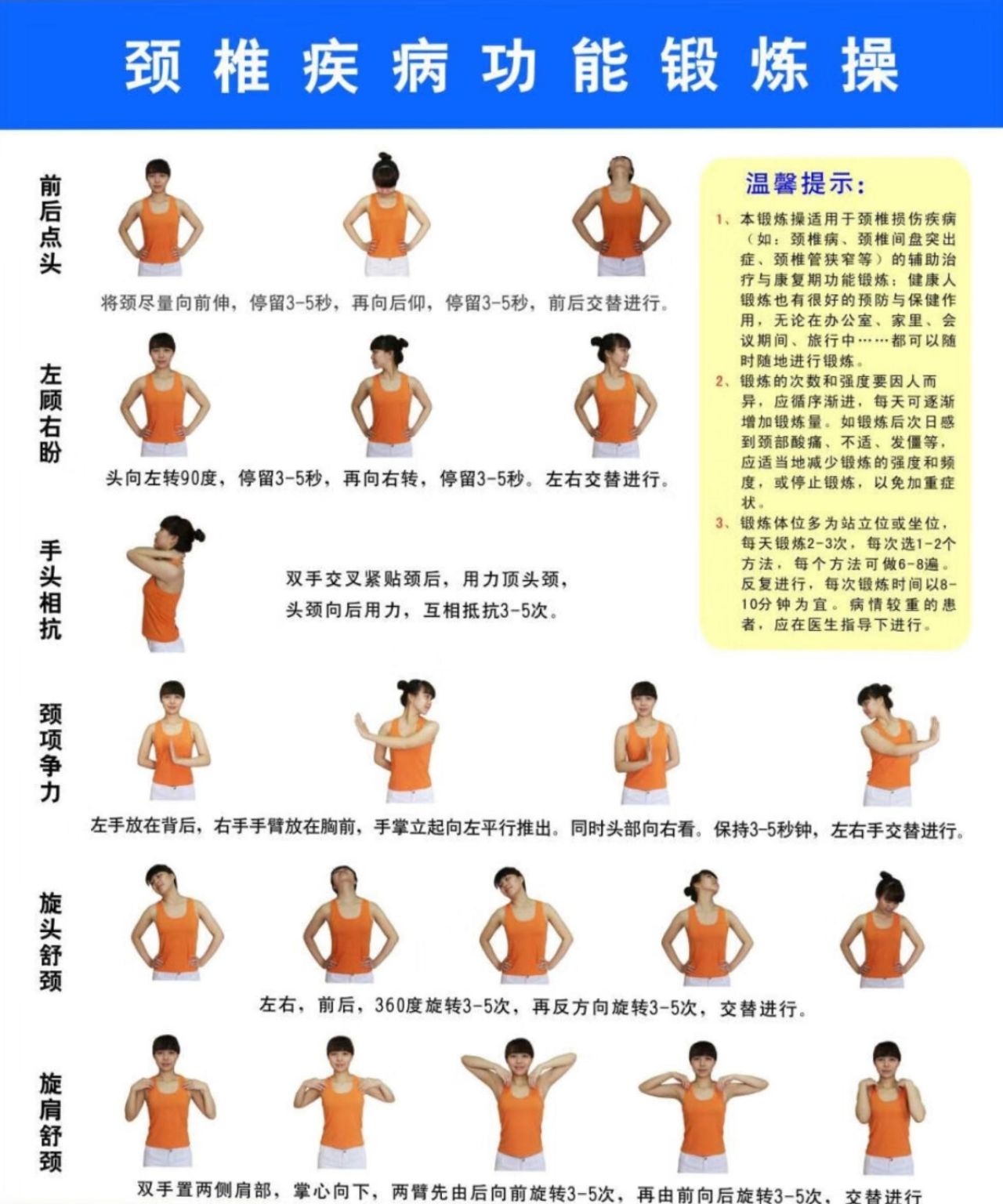 八段锦那个太复杂了,其他医生给我推荐了更加实用的颈椎操,做了一段时间,效果很不错,能明显感觉脖子有在回正。