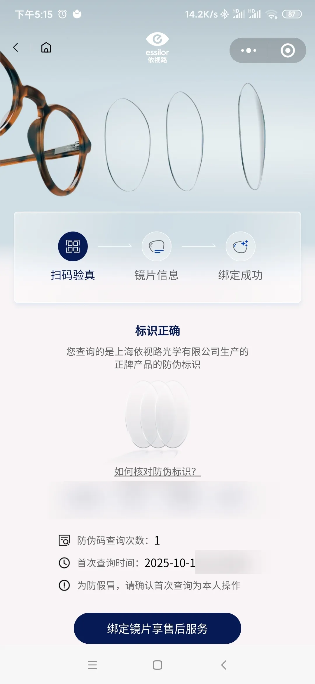 拿到新眼镜时,建议可以录制一个开箱视频,以免新到的眼镜出现刮痕或者磕碰导致说不清,就比如这次收到新眼镜之后,发现镜框的磨砂被弄掉了一块,联系客服之后也妥善处理了。